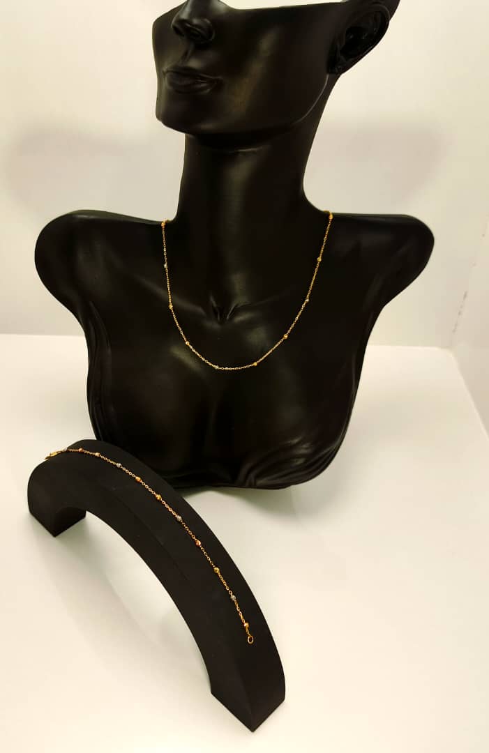 نیم ست البرنادو وزن کل 3/690 گرم وزن زنجیر 2/320 گرم طول زنجیر 42 سانتی متر وزن دستبند 1/370 گرم طول دستبند 18 سانتی متر